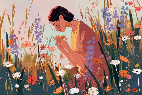 Poster Egy lány a mezőn virágokkal Nr f38801