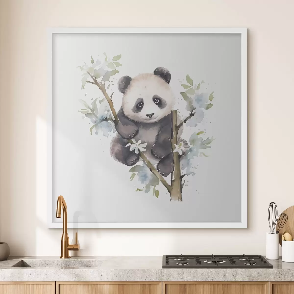 Poster Játékos panda élvezi a tavaszi virágzást Nr f38924