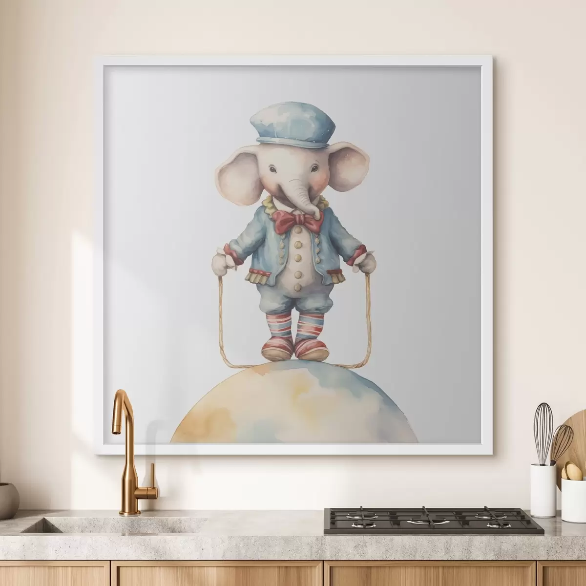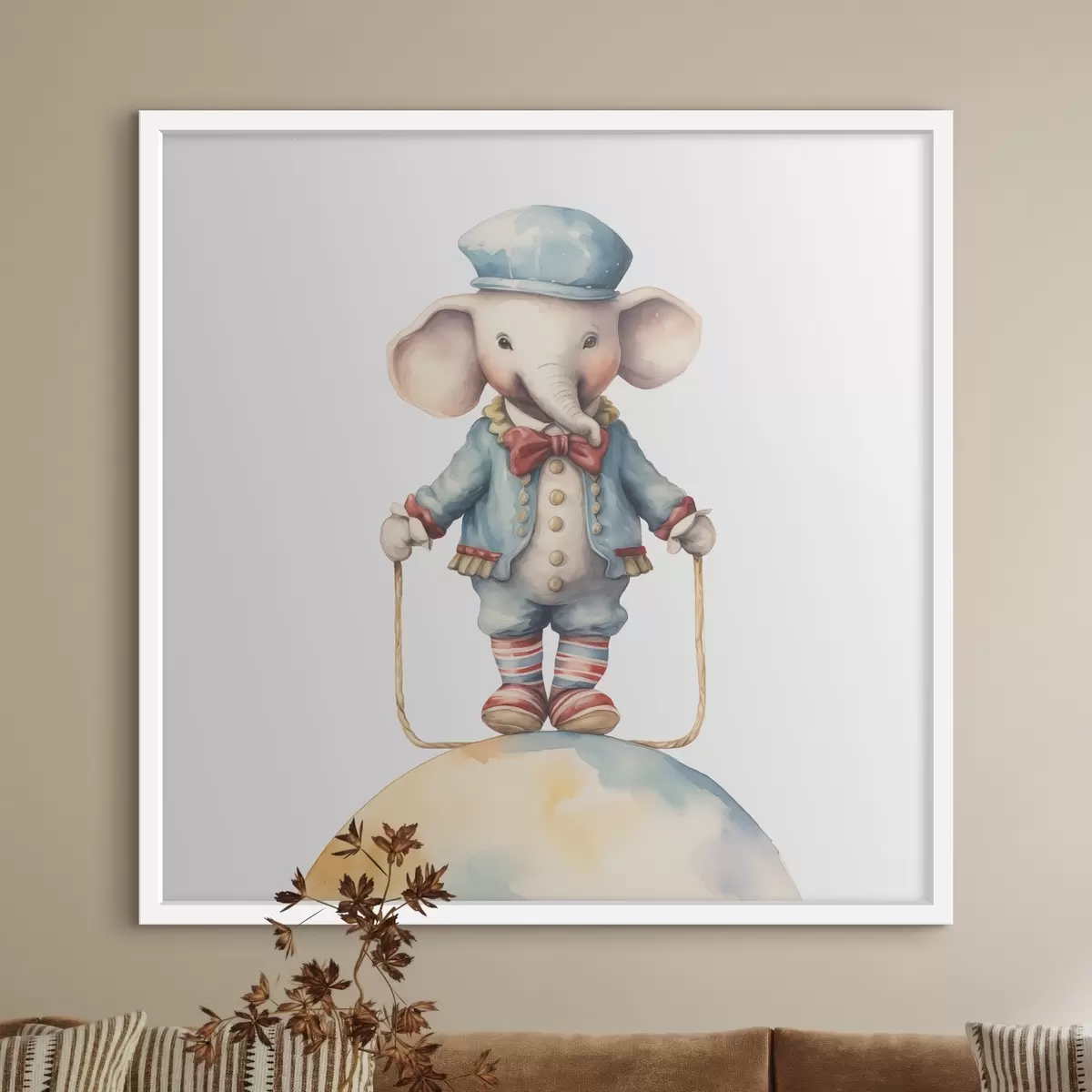 Poster Elefánt egyensúlyozás egy színes földgömbön Nr f38950
