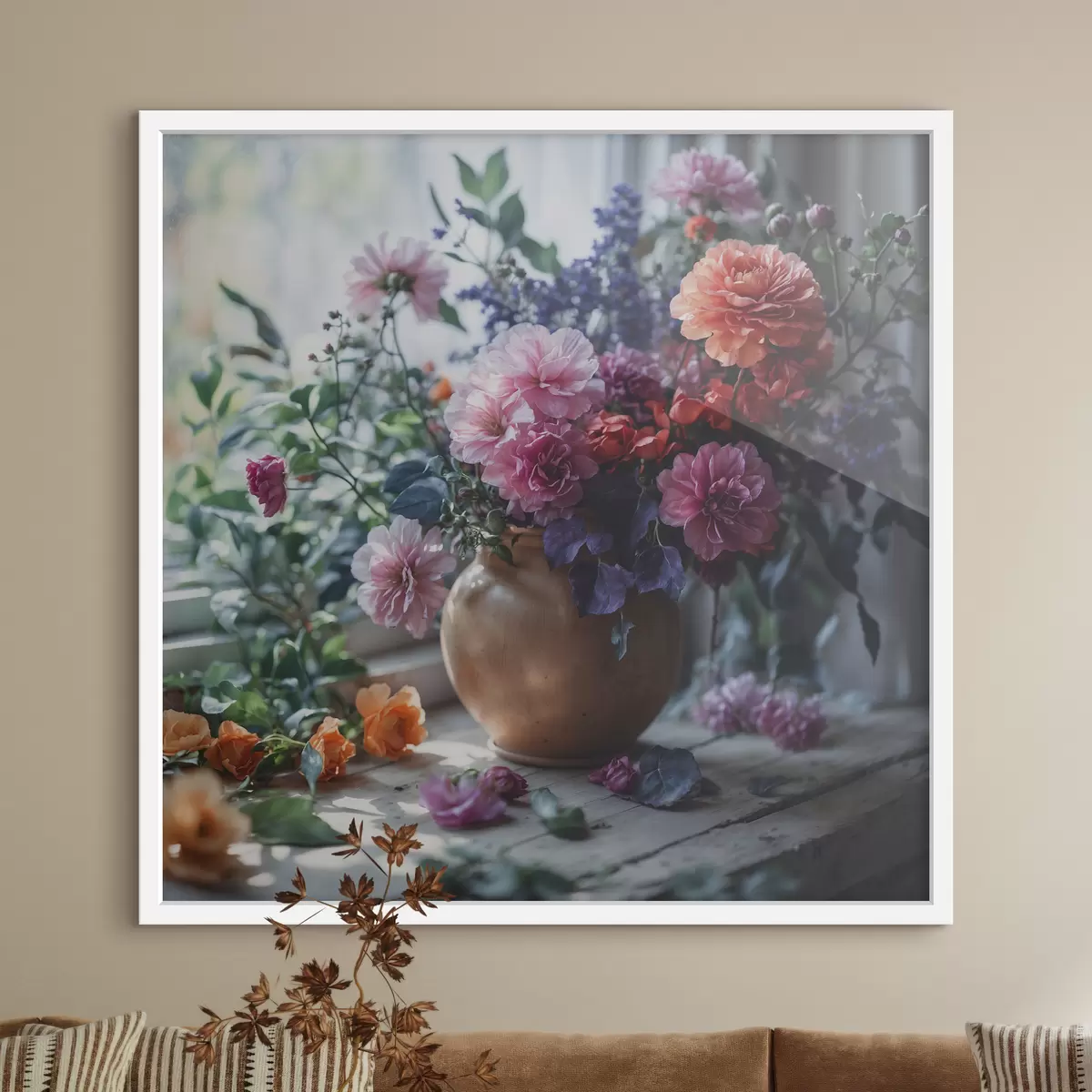 Poster Virágok egy vázában az ablakpárkányon Nr f39176