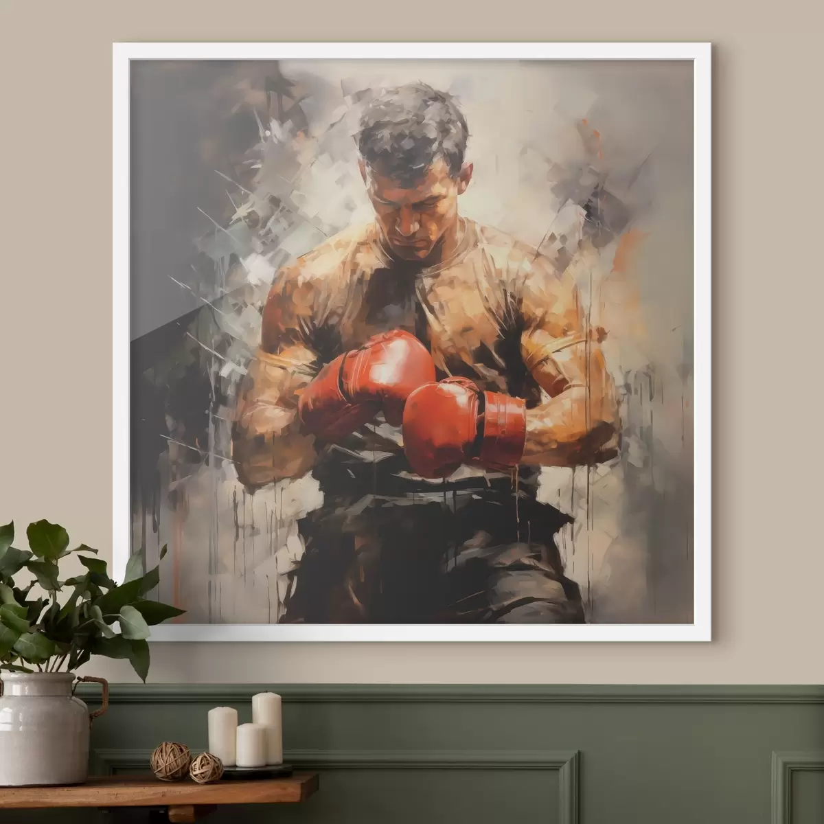 Poster Boxer piros kesztyűben olajfestmény Nr f39180