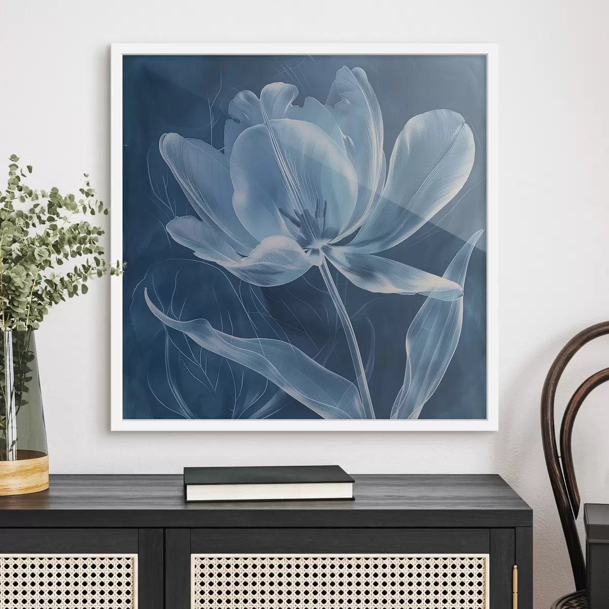 Plakát a sziklán Absztrakt virág a kék háttér f39234
