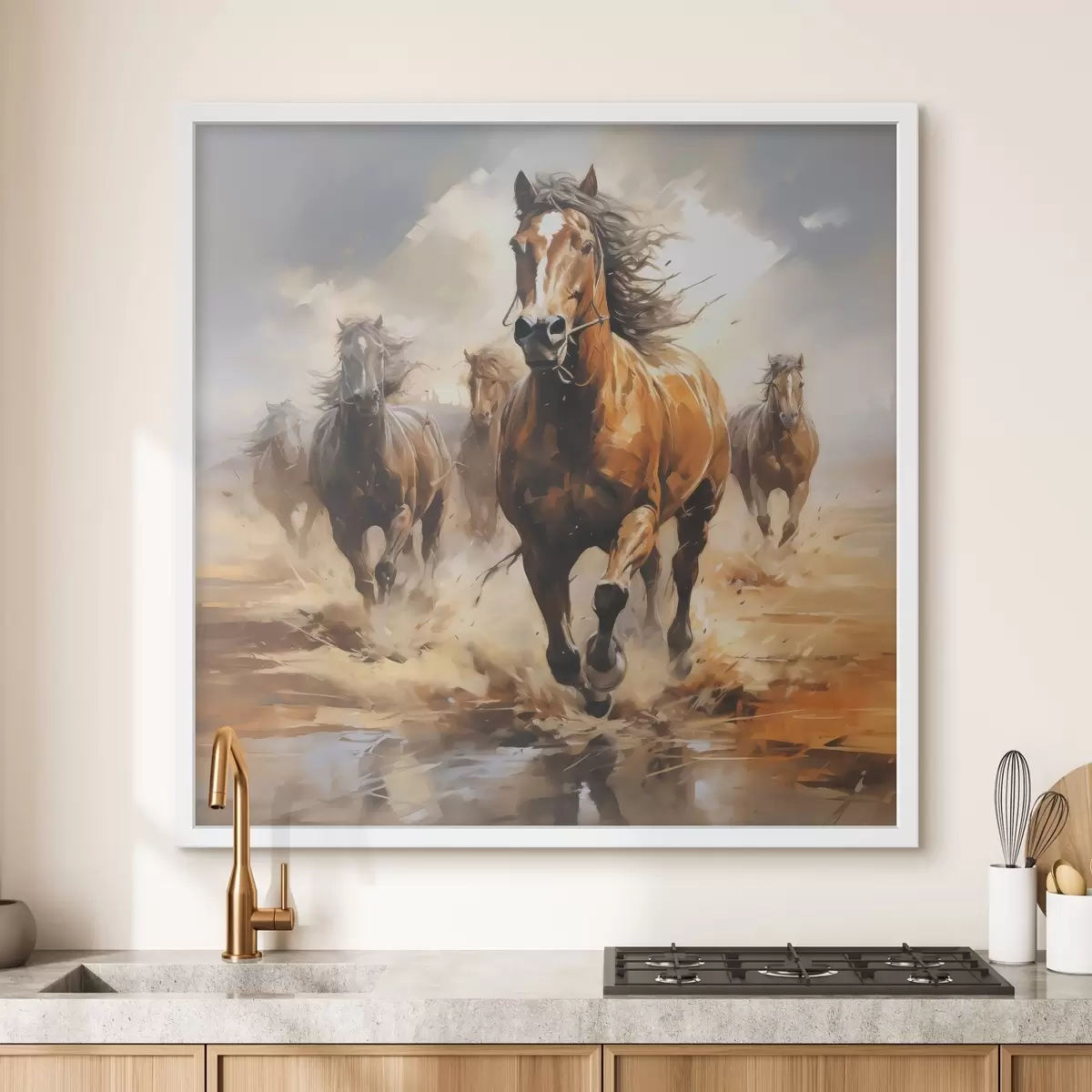 Plakát a sziklán Lovak galoppoznak a réten olajfestmény f39436