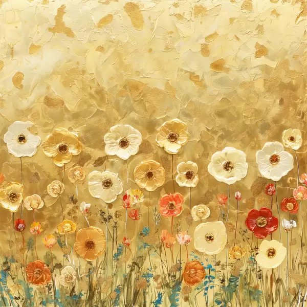 Poster Klimt-stílusú rét: finom pasztellszínű virágok olvasztott textúrával Nr f39464