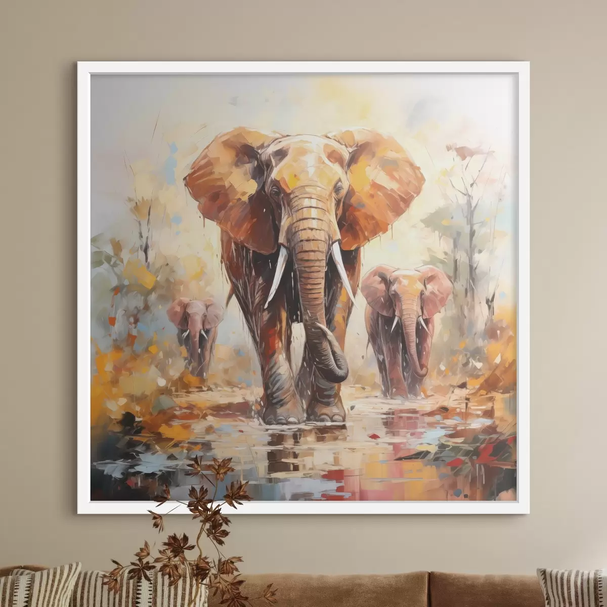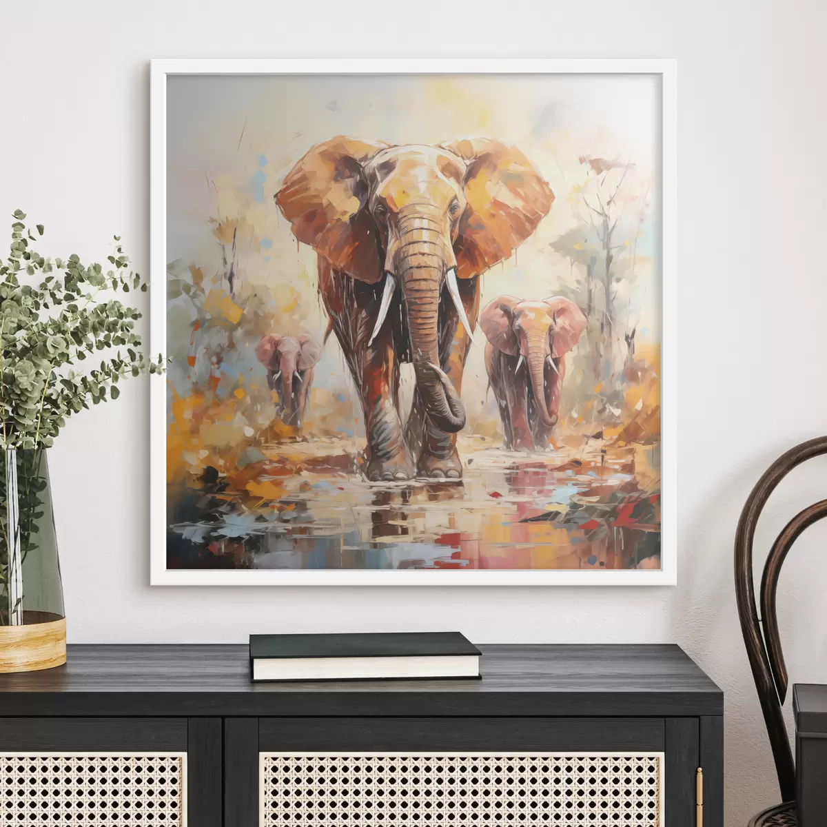 Poster Elefántcsorda a szavanna között, olajfestmény, absztrakt művészet Nr f39573