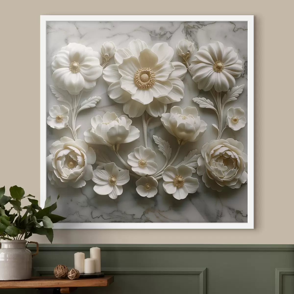 Poster 3D bazrelief virágok márvány háttéren Nr f39738