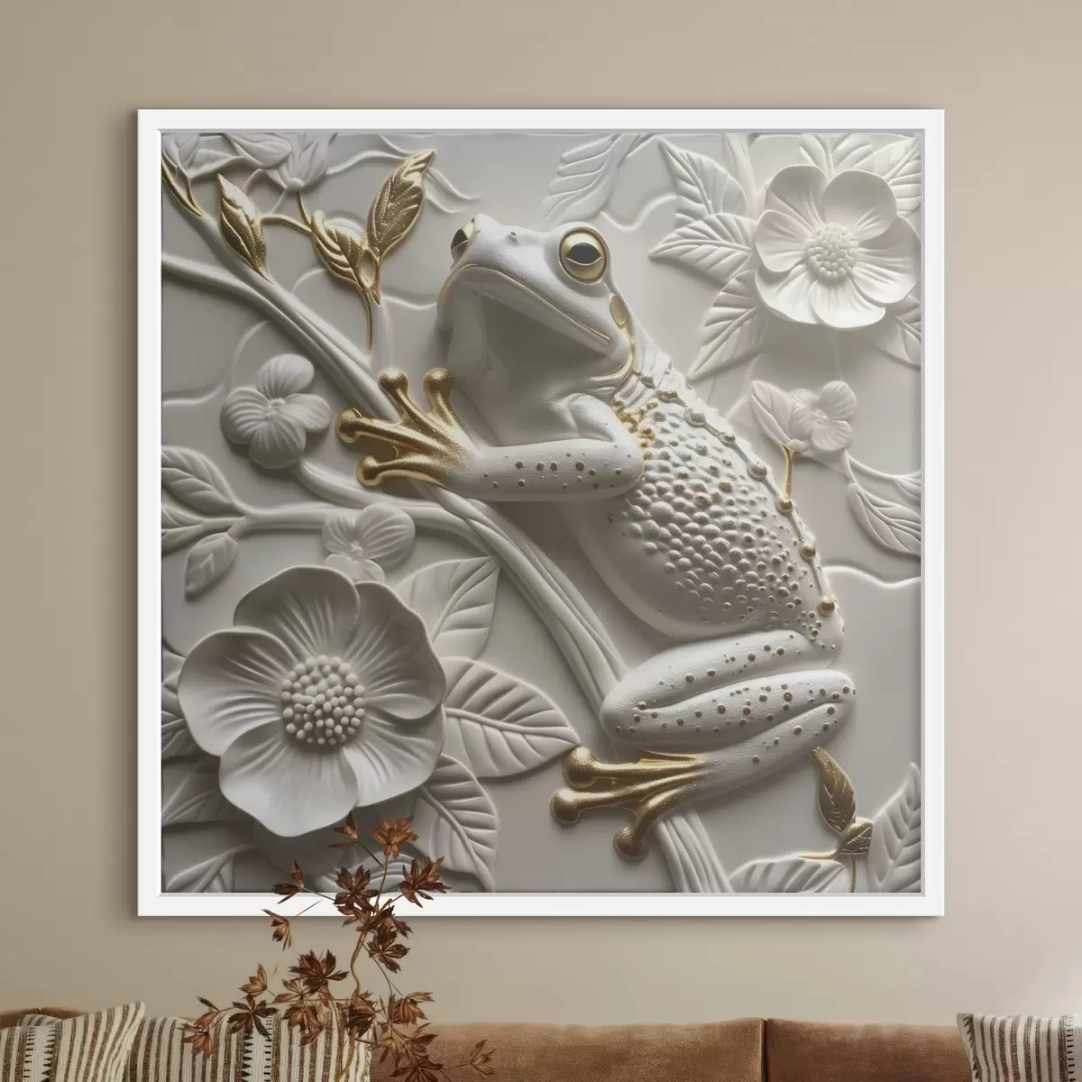 Poster Szobor egy fa béka és egy virágos minta Nr f39750