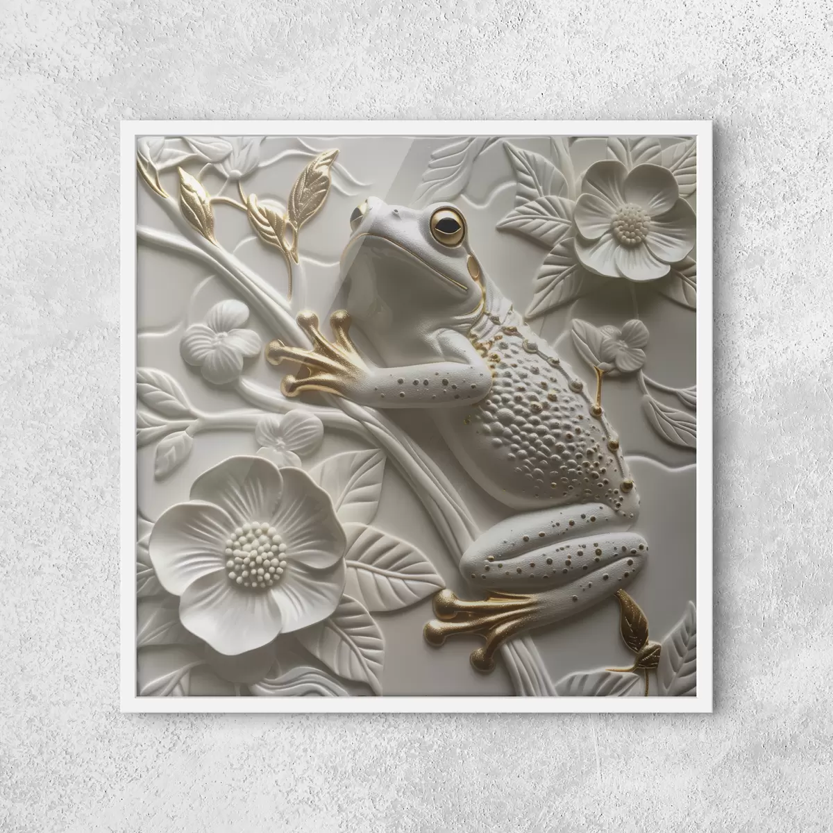 Plakát a sziklán Szobor egy fa béka és egy virágos minta f39750