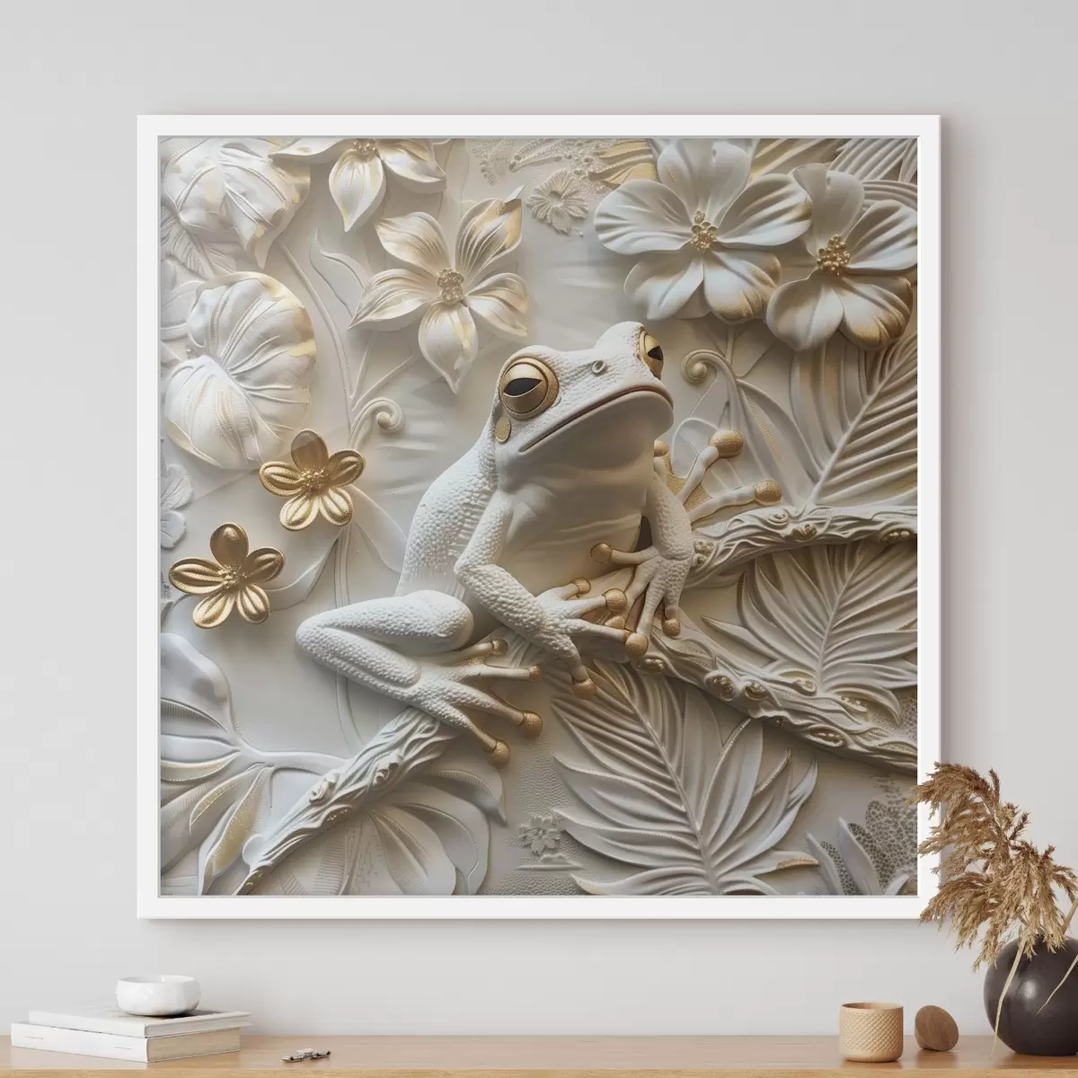 Poster Szobor fa békával és virágos akcentusokkal Nr f39751
