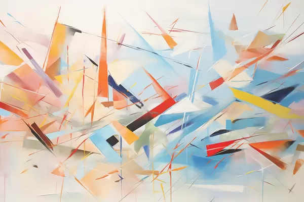Poster Kaotikus dinamikus geometriai absztrakció, kék, piros, sárga Nr f39813