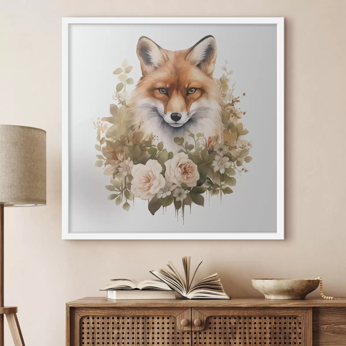 Poster Róka portré fehér rózsák vintage akvarellben Nr f40093