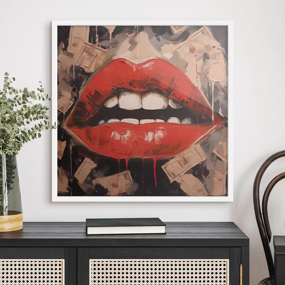 Poster Absztrakt festmény piros ajkak fehér fogak Nr f40319