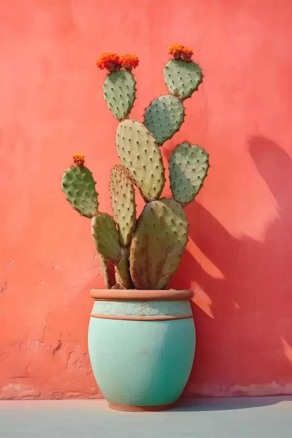 Poster Kaktusz egy világos cserépben egy rózsaszín vörös fal előtt Nr f40800