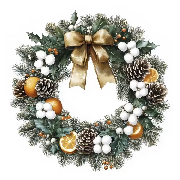 Poster Karácsonyi fenyőkoszorú masnival, pamut, narancs, bogyók és tobozok Nr f41962