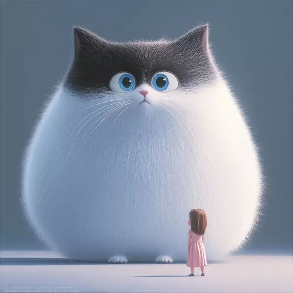 Poster Egy meglepett bolyhos macska egy lánnyal illusztrációs stílusban Nr f41974