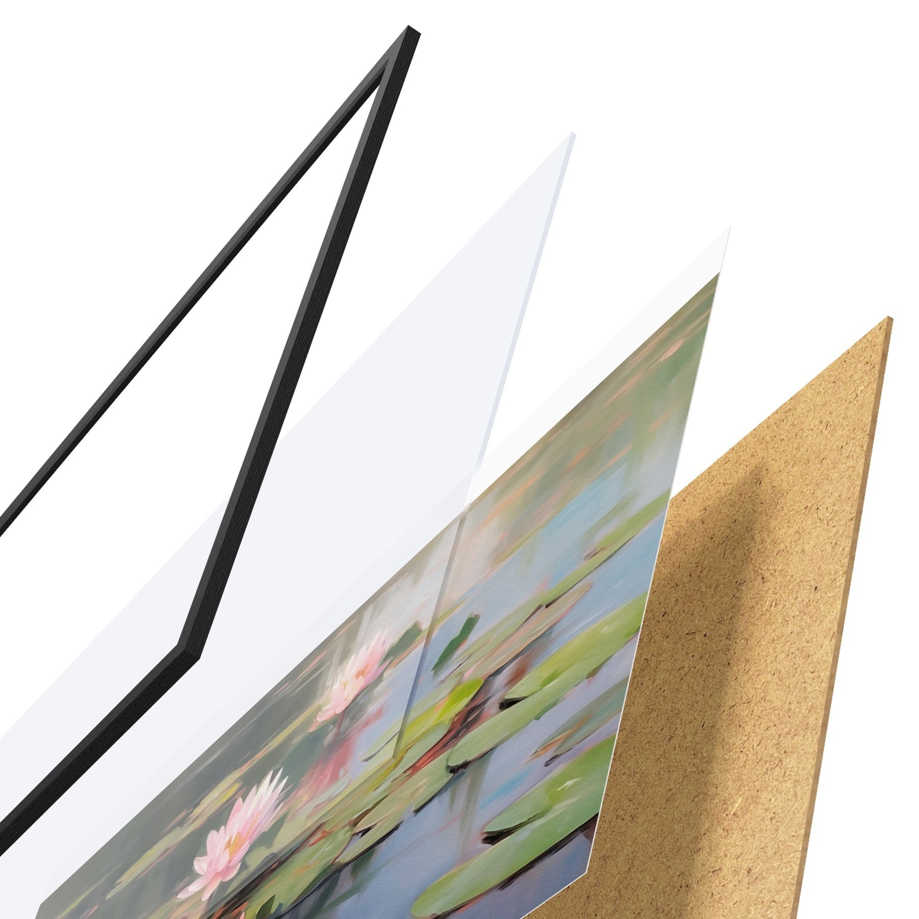 A poszter keretből, plexiből, nyomtatott képből és forgácslap hátlapból áll. A poszter a hátoldalon található rögzítőknek köszönhetően azonnal felakasztható a falra.