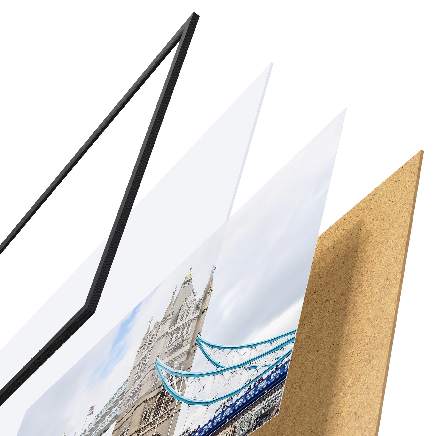 A poszter keretből, plexiből, nyomtatott képből és forgácslap hátlapból áll. A poszter a hátoldalon található rögzítőknek köszönhetően azonnal felakasztható a falra.