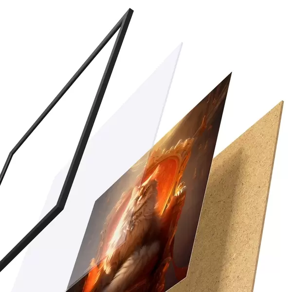 A poszter keretből, plexiből, nyomtatott képből és forgácslap hátlapból áll. A poszter a hátoldalon található rögzítőknek köszönhetően azonnal felakasztható a falra.