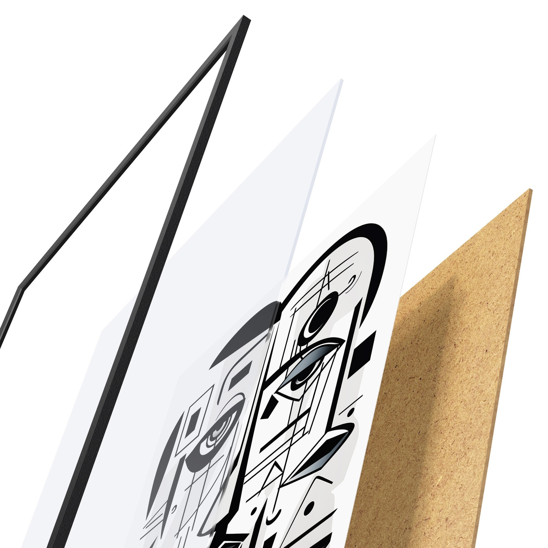 A poszter keretből, plexiből, nyomtatott képből és forgácslap hátlapból áll. A poszter a hátoldalon található rögzítőknek köszönhetően azonnal felakasztható a falra.
