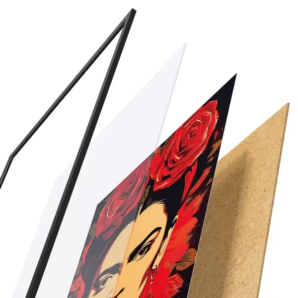 A poszter keretből, plexiből, nyomtatott képből és forgácslap hátlapból áll. A poszter a hátoldalon található rögzítőknek köszönhetően azonnal felakasztható a falra.