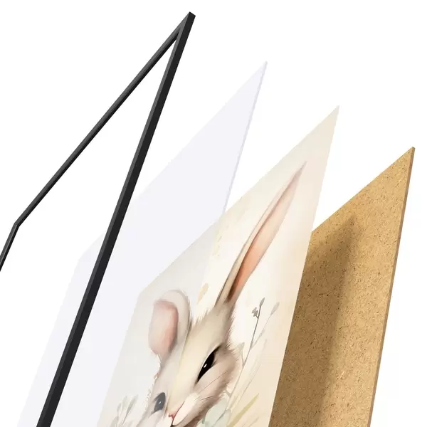 A poszter keretből, plexiből, nyomtatott képből és forgácslap hátlapból áll. A poszter a hátoldalon található rögzítőknek köszönhetően azonnal felakasztható a falra.