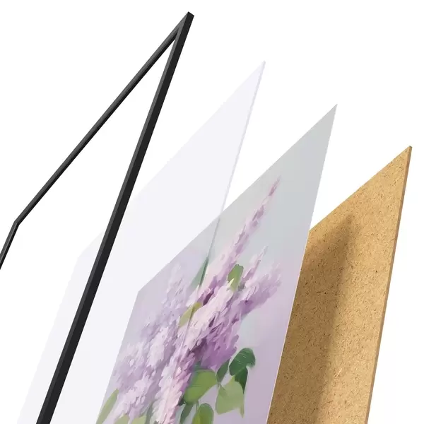 A poszter keretből, plexiből, nyomtatott képből és forgácslap hátlapból áll. A poszter a hátoldalon található rögzítőknek köszönhetően azonnal felakasztható a falra.