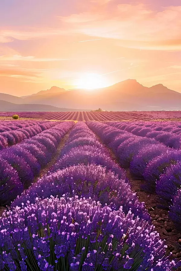 Plakát a sziklán Naplemente egy levendula mezőn f45663
