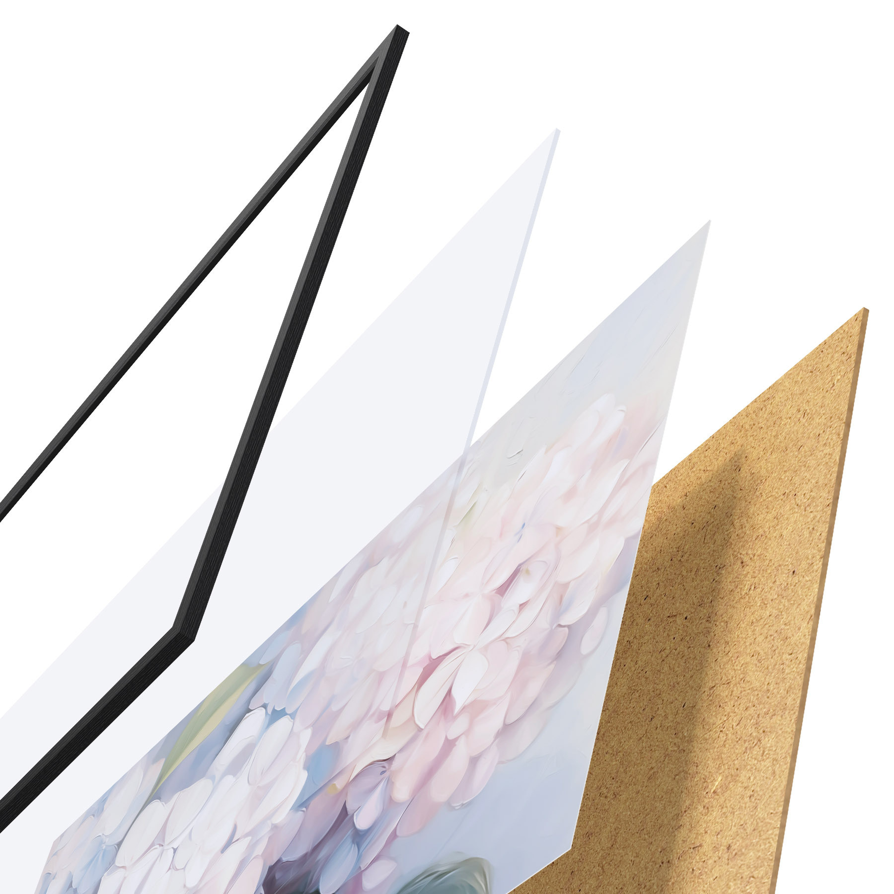 A poszter keretből, plexiből, nyomtatott képből és forgácslap hátlapból áll. A poszter a hátoldalon található rögzítőknek köszönhetően azonnal felakasztható a falra.