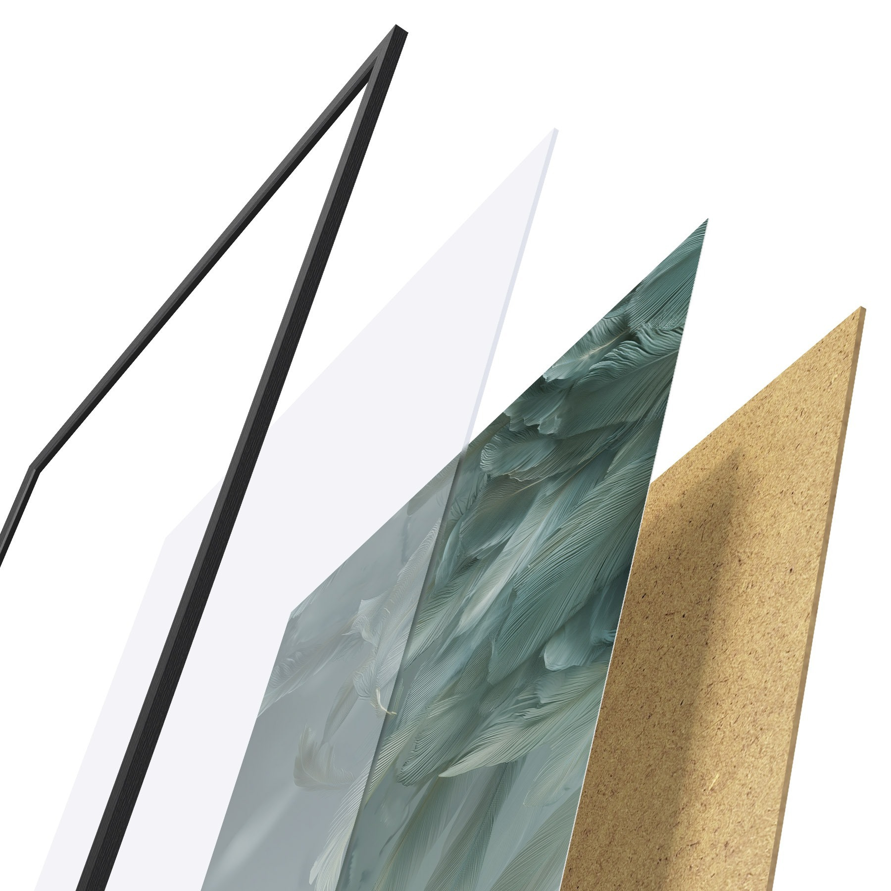 A poszter keretből, plexiből, nyomtatott képből és forgácslap hátlapból áll. A poszter a hátoldalon található rögzítőknek köszönhetően azonnal felakasztható a falra.