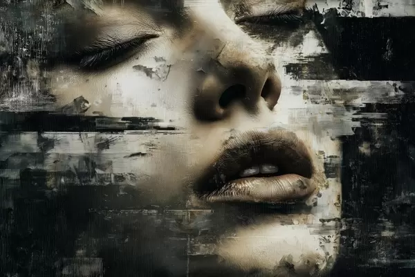Poster Absztrakt női portré glitch effektussal és textúrákkal Nr f45873