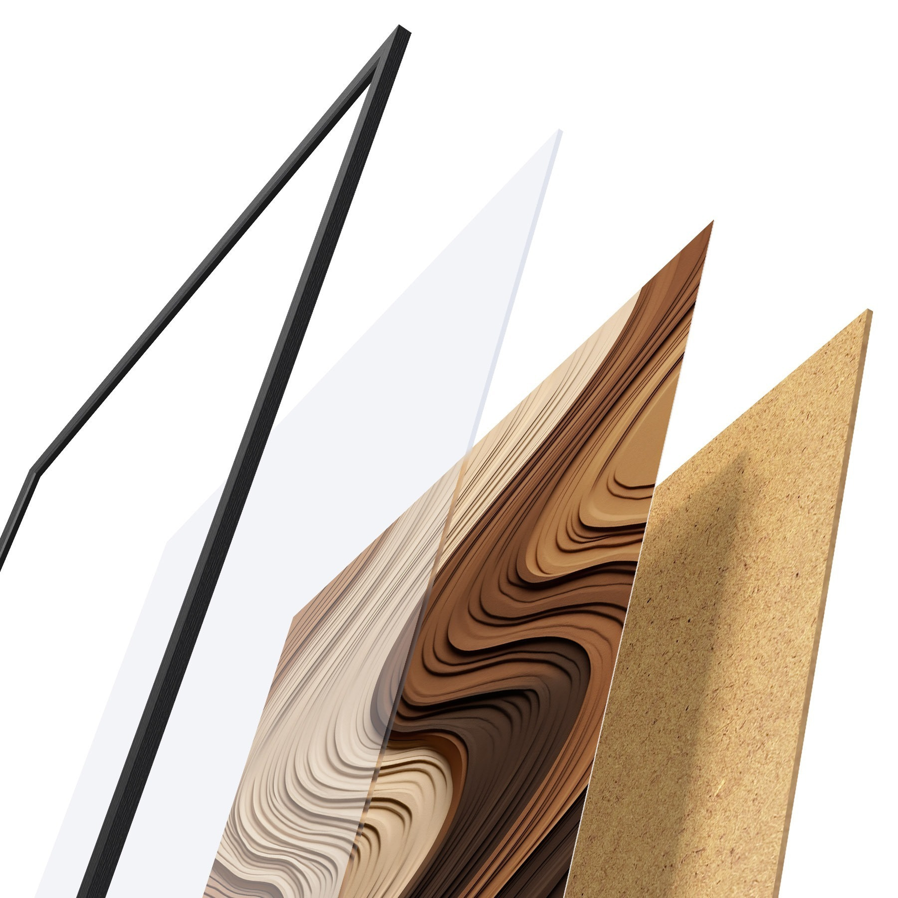 A poszter keretből, plexiből, nyomtatott képből és forgácslap hátlapból áll. A poszter a hátoldalon található rögzítőknek köszönhetően azonnal felakasztható a falra.