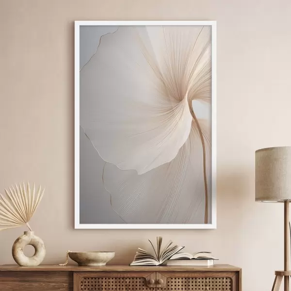 Poster Absztrakt virágok vékony, finom szirmokkal, fehér és bézs árnyalatokban Nr f45922