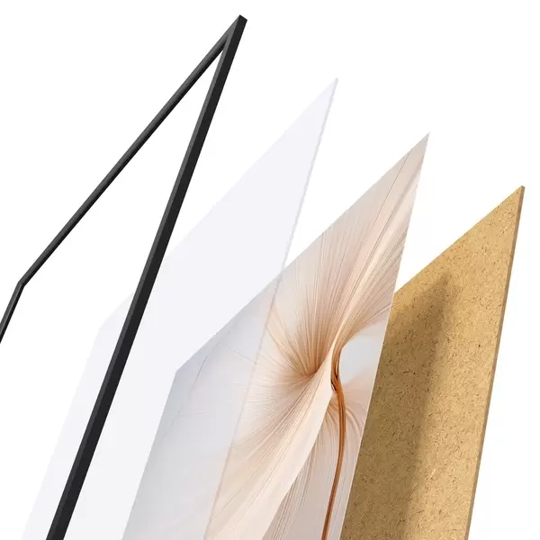 A poszter keretből, plexiből, nyomtatott képből és forgácslap hátlapból áll. A poszter a hátoldalon található rögzítőknek köszönhetően azonnal felakasztható a falra.