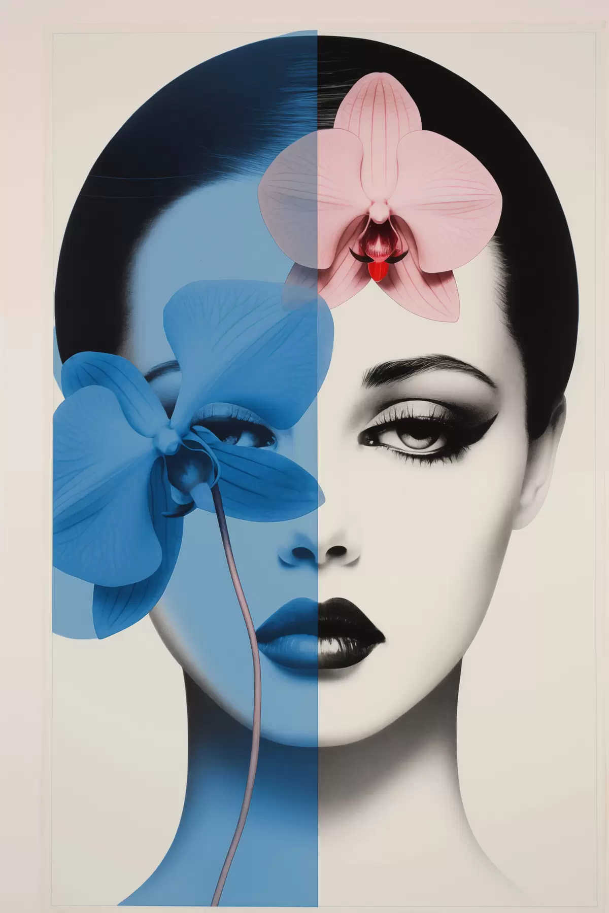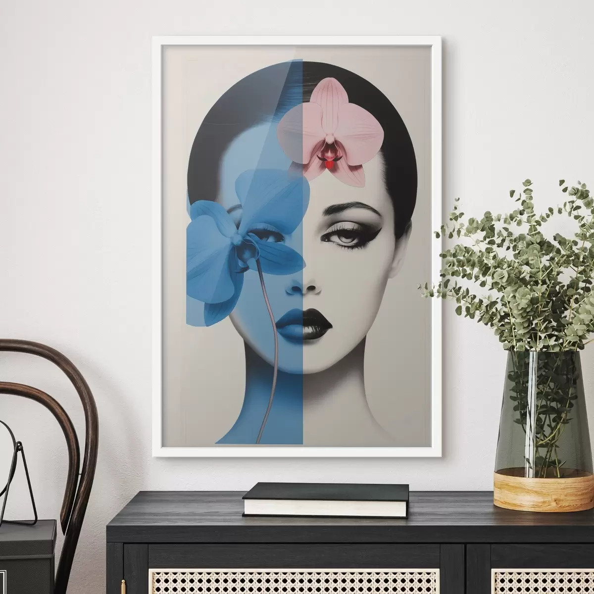 Poster Absztrakt művészeti portré egy nőről orchideákkal Nr f45924