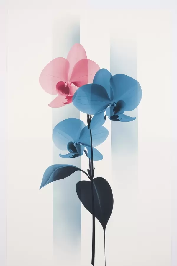 Poster Fehér alapon, függőleges csíkokkal díszített levelű orchideák Nr f45925