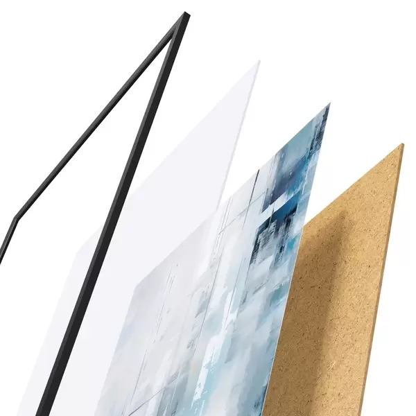 A poszter keretből, plexiből, nyomtatott képből és forgácslap hátlapból áll. A poszter a hátoldalon található rögzítőknek köszönhetően azonnal felakasztható a falra.