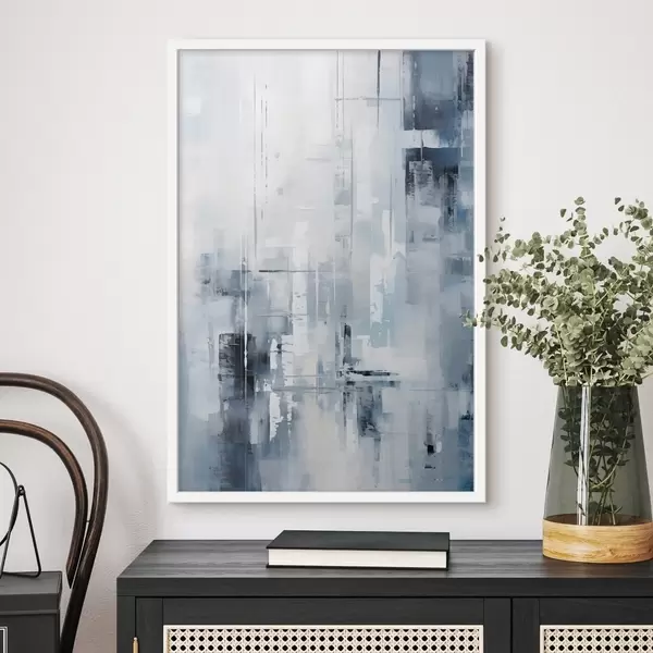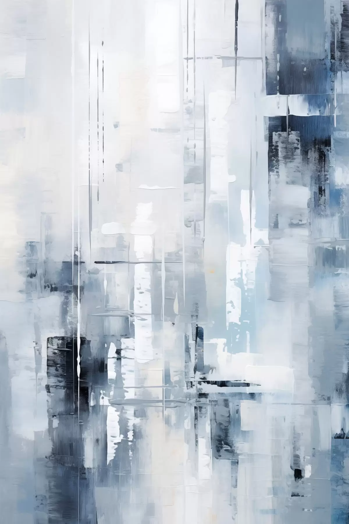 Plakát a sziklán Absztrakt festmény utánzat kék, szürke és fehér színekkel, függőleges vonalakkal és geometriai alakzatokkal f45927