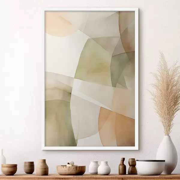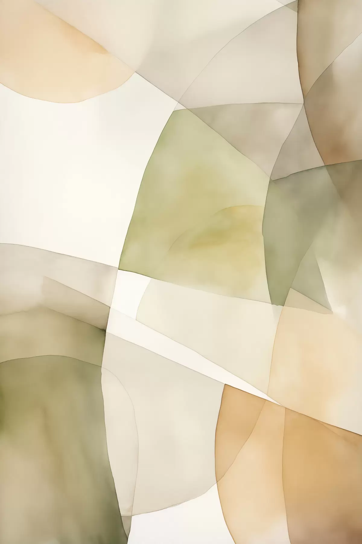 Poster Absztrakt akvarell textúrájú geometrikus formák zöld, barna és bézs árnyalatokban Nr f45928