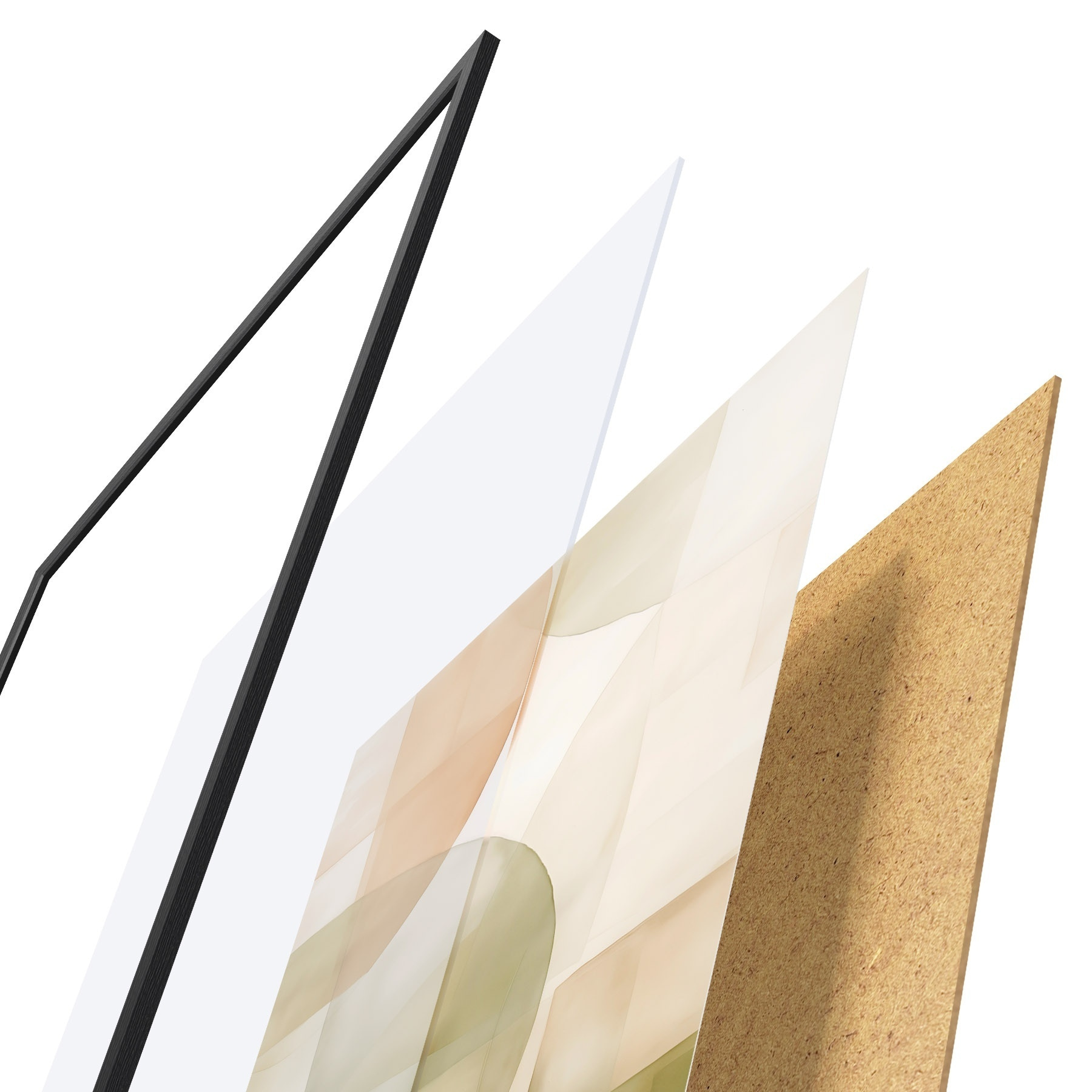 Plakát a sziklán Absztrakt akvarell textúrájú geometrikus formák zöld, barna és bézs árnyalatokban f45929