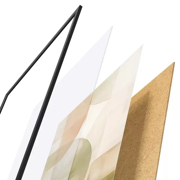 A poszter keretből, plexiből, nyomtatott képből és forgácslap hátlapból áll. A poszter a hátoldalon található rögzítőknek köszönhetően azonnal felakasztható a falra.