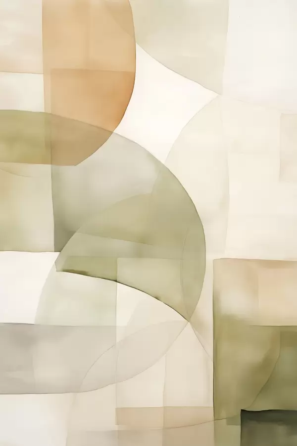 Poster Absztrakt akvarell textúrájú geometrikus formák zöld, barna és bézs árnyalatokban Nr f45929