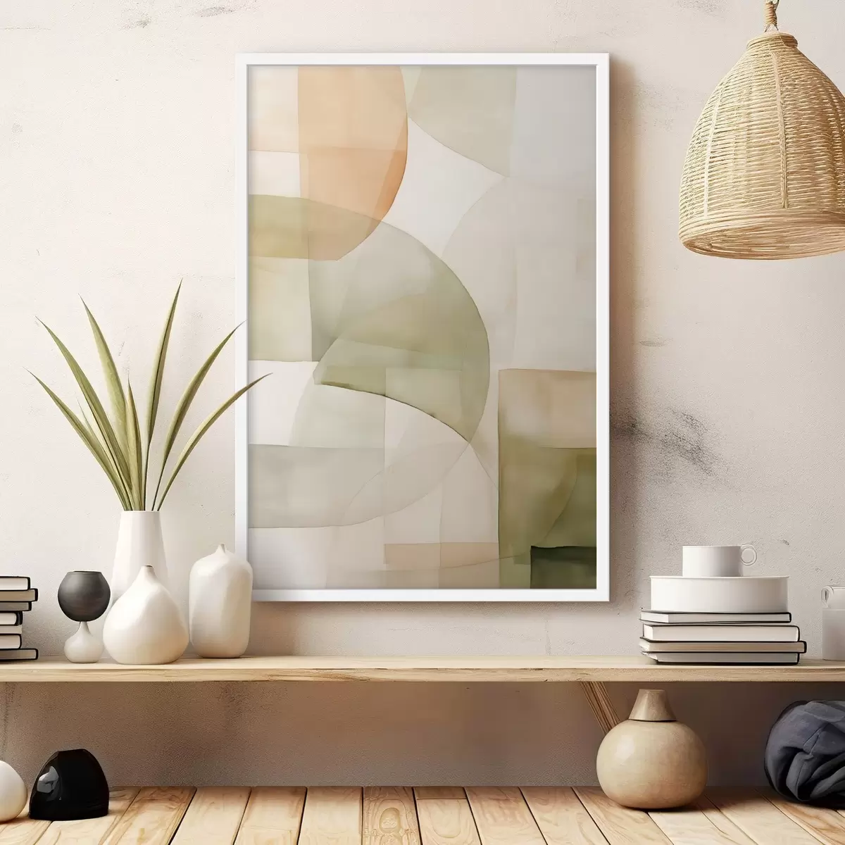 Plakát a sziklán Absztrakt akvarell textúrájú geometrikus formák zöld, barna és bézs árnyalatokban f45929