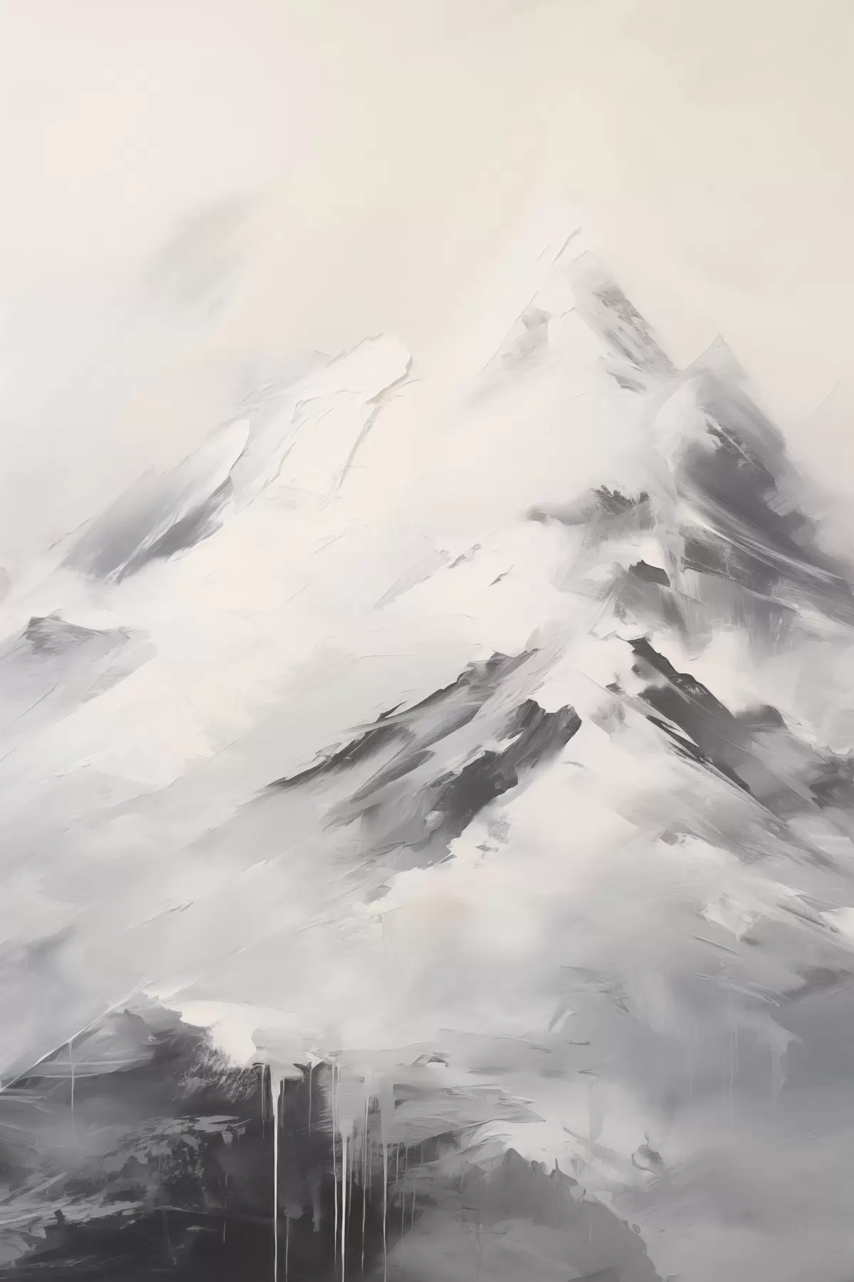 Poster Havas hegycsúcsok szürke árnyékokkal, szürke ég, ecsetvonások, texturált, minimalista Nr f45932