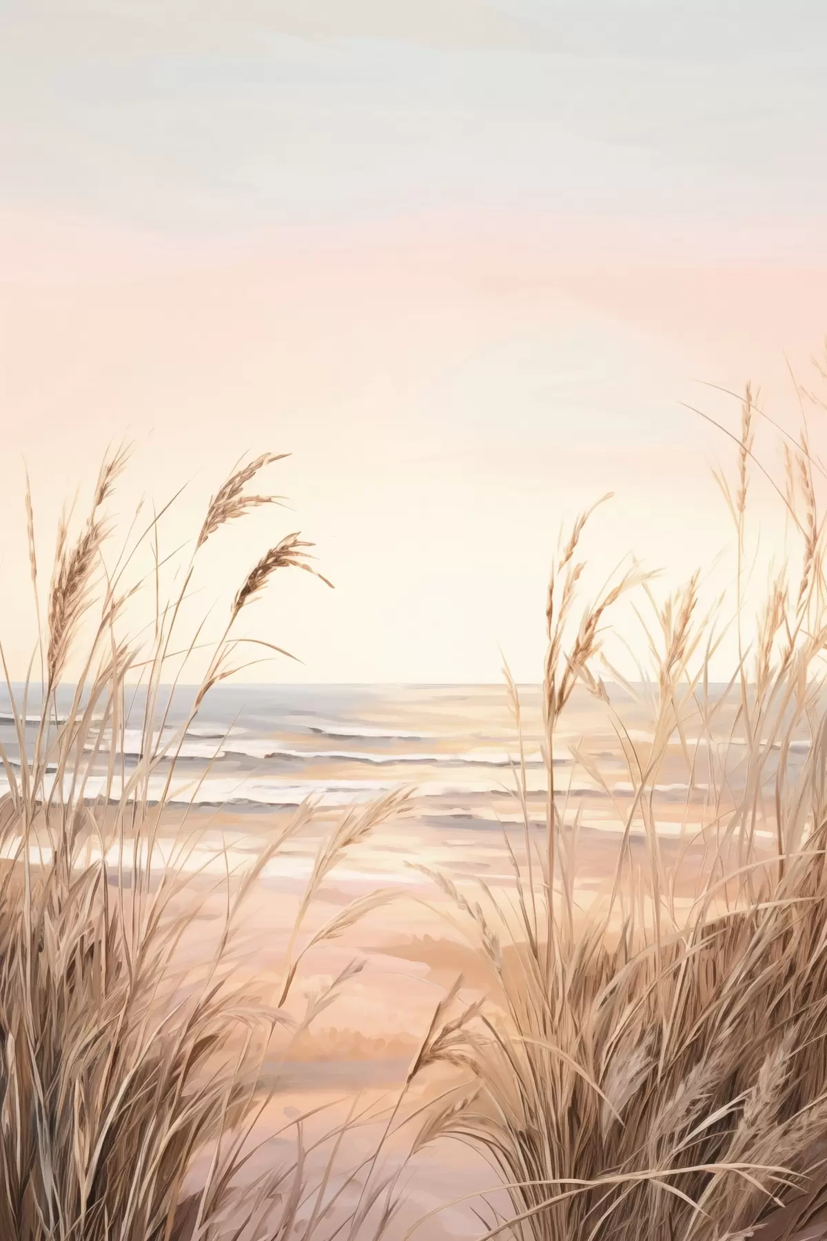 Poster Pampas fű pasztell narancssárga színpalettával, világos rózsaszín égbolttal, nyugodt tájjal Nr f45935