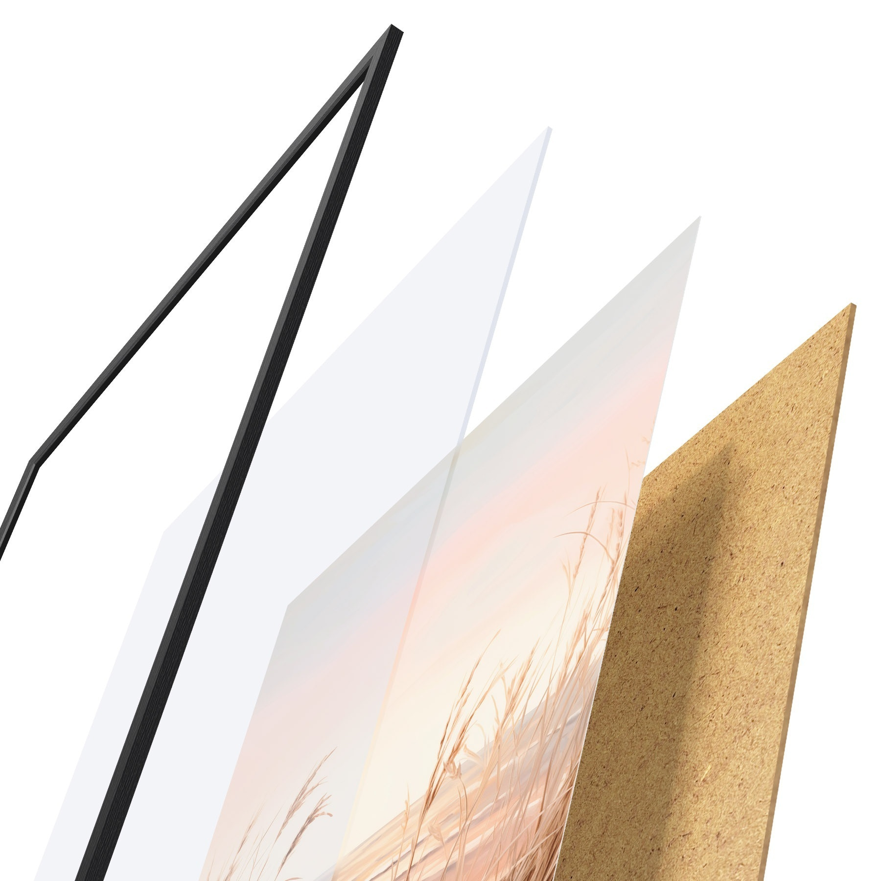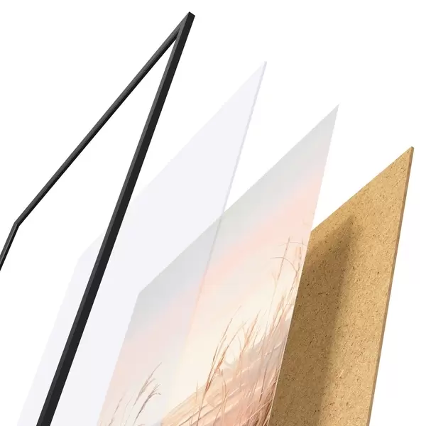 A poszter keretből, plexiből, nyomtatott képből és forgácslap hátlapból áll. A poszter a hátoldalon található rögzítőknek köszönhetően azonnal felakasztható a falra.