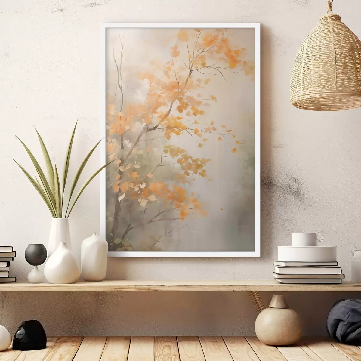 Poster Őszi faágak narancssárga levelekkel egy lágy fényű erdőben Nr f45940