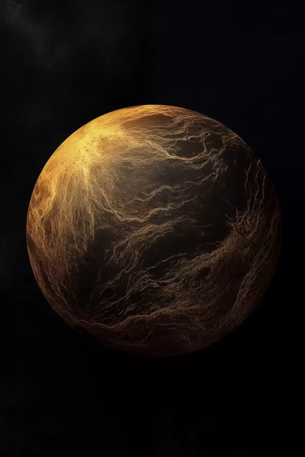 Plakát a sziklán Absztrakt bolygó narancssárga erekkel fekete űr háttér előtt, modern minimalista művészet f45943