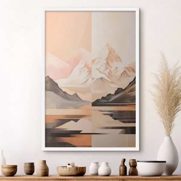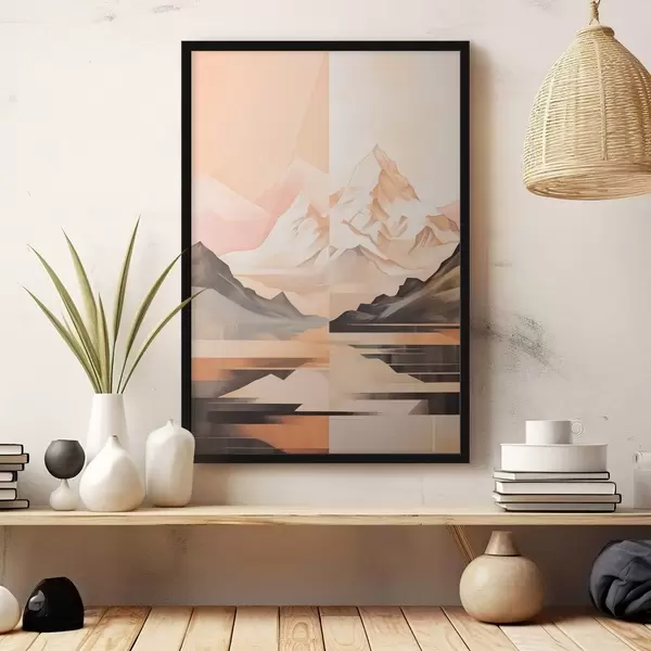 Poster Absztrakt táj hegyekkel és tóval, pasztell színekkel, minimalista stílusban Nr f45948