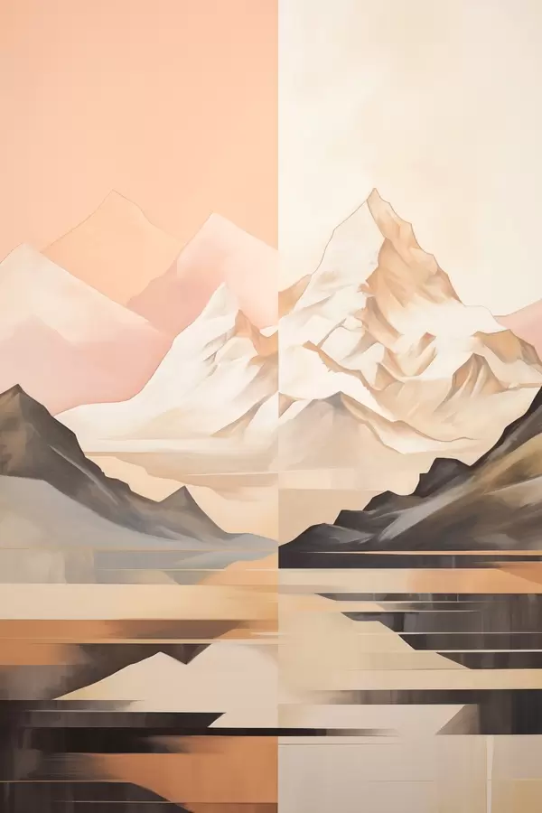 Poster Absztrakt táj hegyekkel és tóval, pasztell színekkel, minimalista stílusban Nr f45948