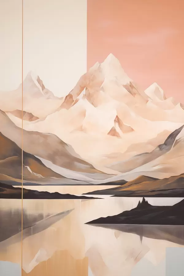 Poster Absztrakt táj hegyekkel és tóval, pasztell színekkel, minimalista stílusban Nr f45949